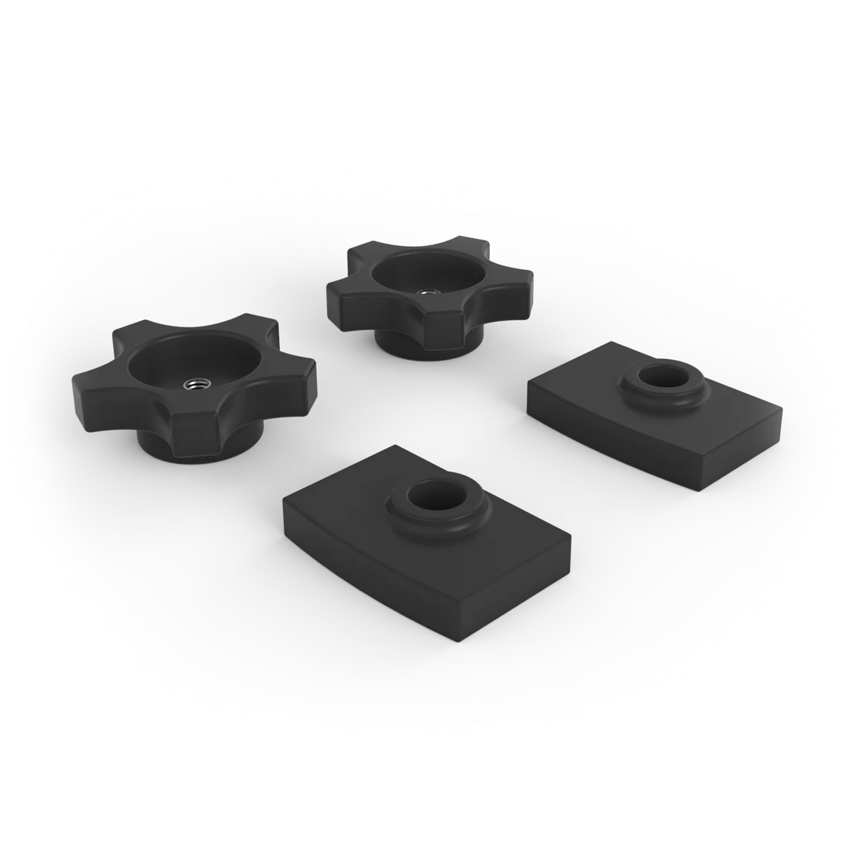 Frame retainers and butterfly screws to secure your racquet to the racquet bar. This part is not compatible with the ModuleX Modular Mounting System.
