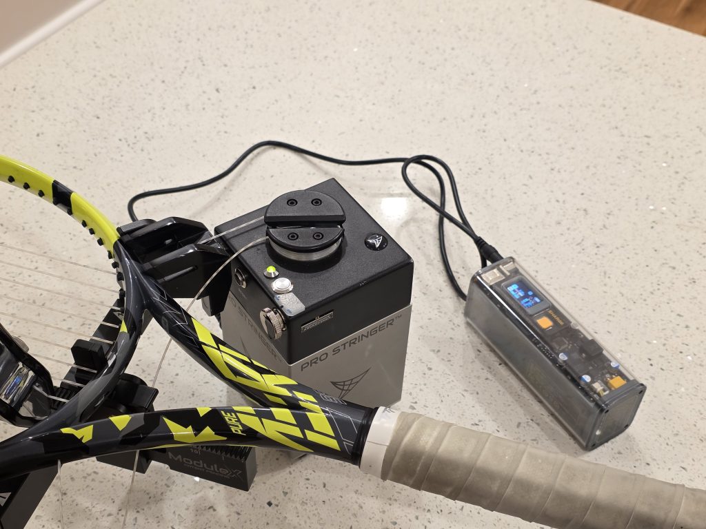 Game changer. Takes portability to a new level. You can power the Pro Stringer without the limitation of having to plug it into the wall. You can also SUPER FAST CHARGE your mobile devices about 6 times as well. It has 2 USB-C, 1 USB-A and 1 DC output ports. The supplied connector cable for Pro Stringer is very robust and better than original power cable.